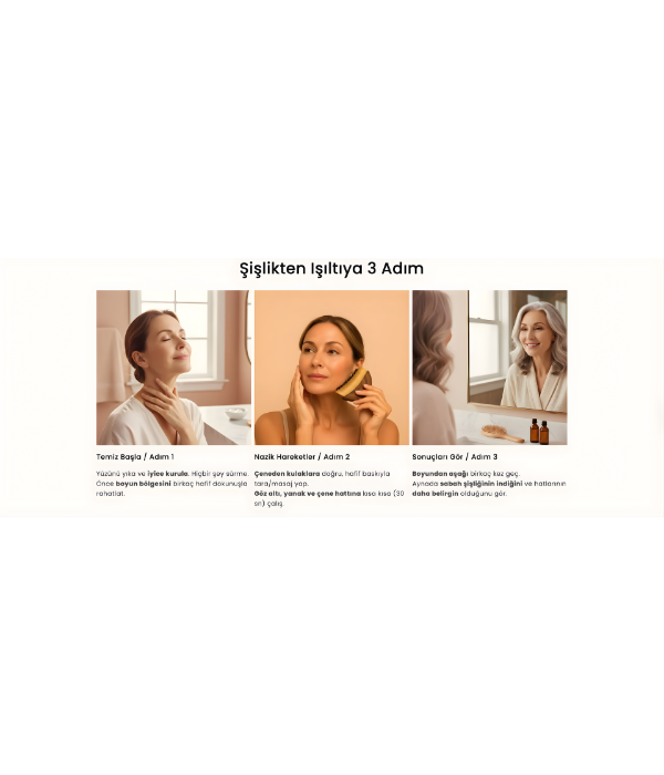 Yüzyıllardır uygulanan nazik yüz masajı ilkelerine dayanır; düzenli kullanımda cildi daha canlı ve toparlanmış gösterir.